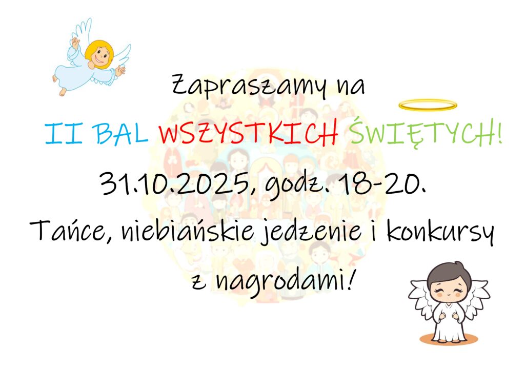 Zaproszenie na II BAL WSZYSTKICH ŚWIĘTYCH! 31.10.2025, godz. 18-20. Tańce, niebiańskie jedzenie i konkursy z nagrodami!